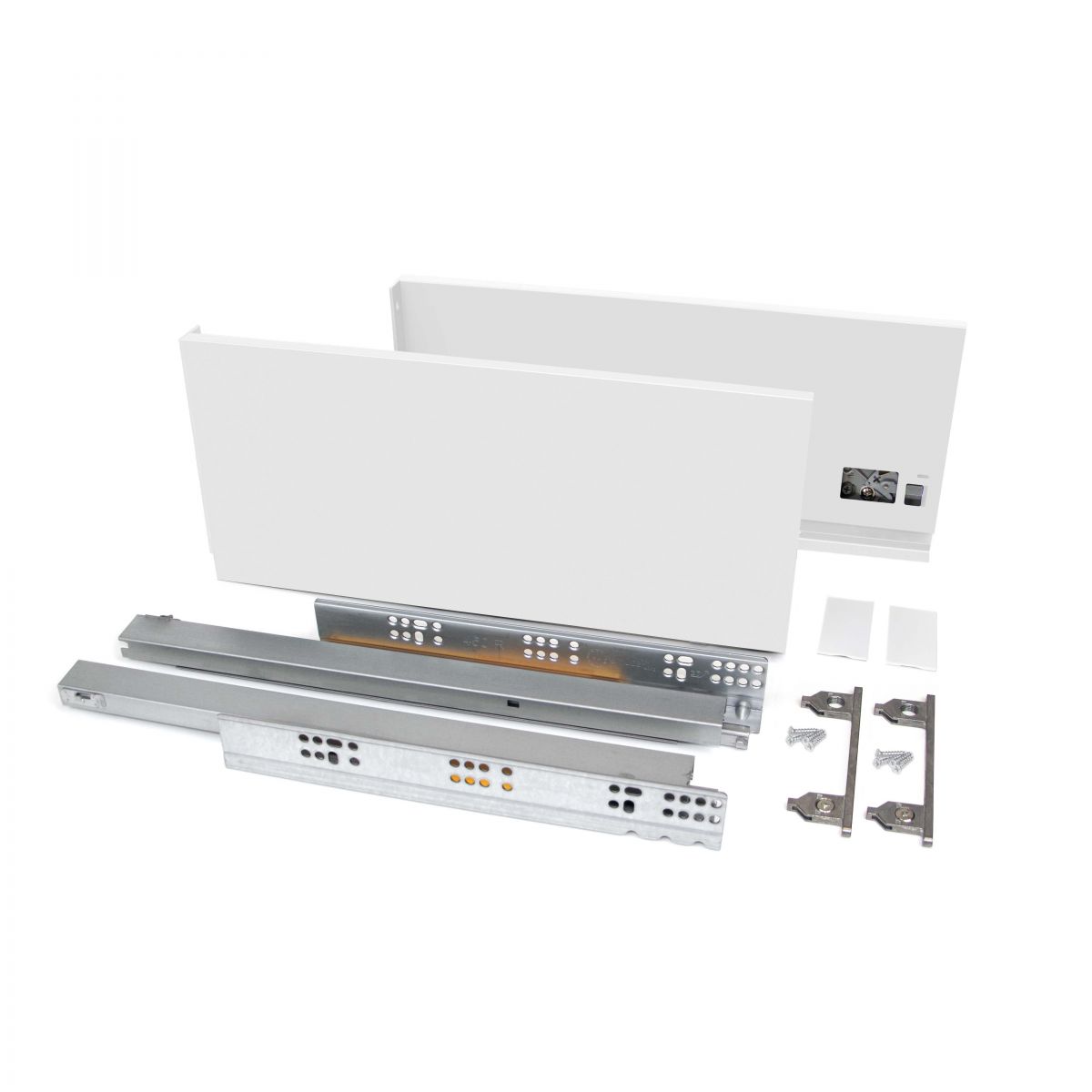 - Kit di accessori necessari per il montaggio del cassetto esterno di altezza 178 mm e profondità d 500 mm, a eccezione di frontalino, retro e fondo.