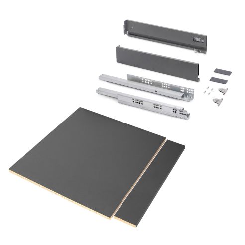 Emuca Kit cassetto per cucina o bagno Vertex di altezza 93 mm con pannelli inclusi., 600, Grigio antracite, Vari