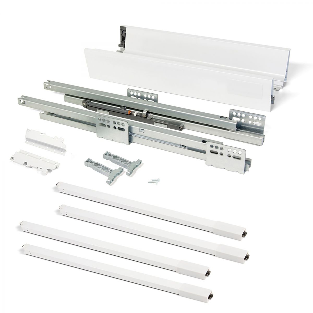 Emuca Kit cassetto per cucina Vantage-Q, altezza 204 mm, prof. 350 mm, con astine, chiusura soft, Acciaio, Bianco