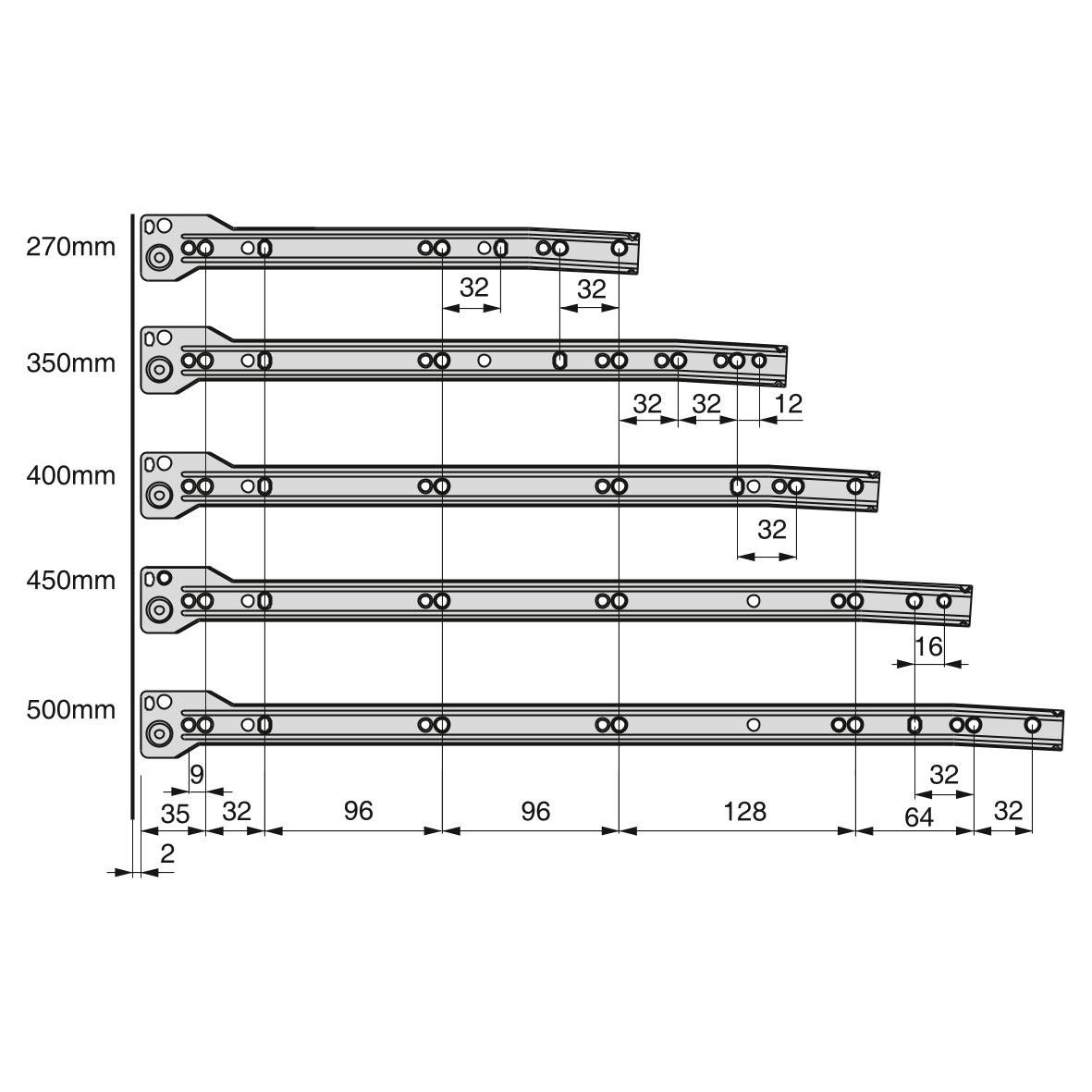 Il kit per cassetto da cucina e bagno Ultrabox è composto da profili lateriali in acciaio con guide a rotella, progettate con finiture verniciate in alluminio. E' la migliore opzione con il miglior rapporto qualità-prezzo per cassetti da cucina e bagno. Ogni kit include tutti gli accesori per il montaggio di un cassetto: profili laterali, set di guide con caduta e agganci anteriori per il frontalino. Necessita di pannelli tagliati a misura per il fondo e la schiena oltre al frontalino del cassetto. Gli aggangi di fissaggio del frontalino permettono la regolazione eccentrica ± 2 mm verticale. Questi agganci sono già montati sul lato della sponda in acciaio.