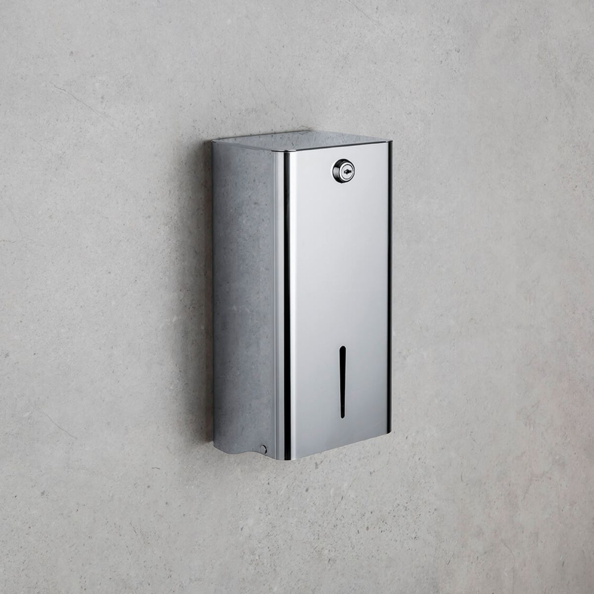 Distributore carta igienica a foglio singolo Colombo Design Contract-Comunità con serratura di sicurezza finitura Inox lucido.