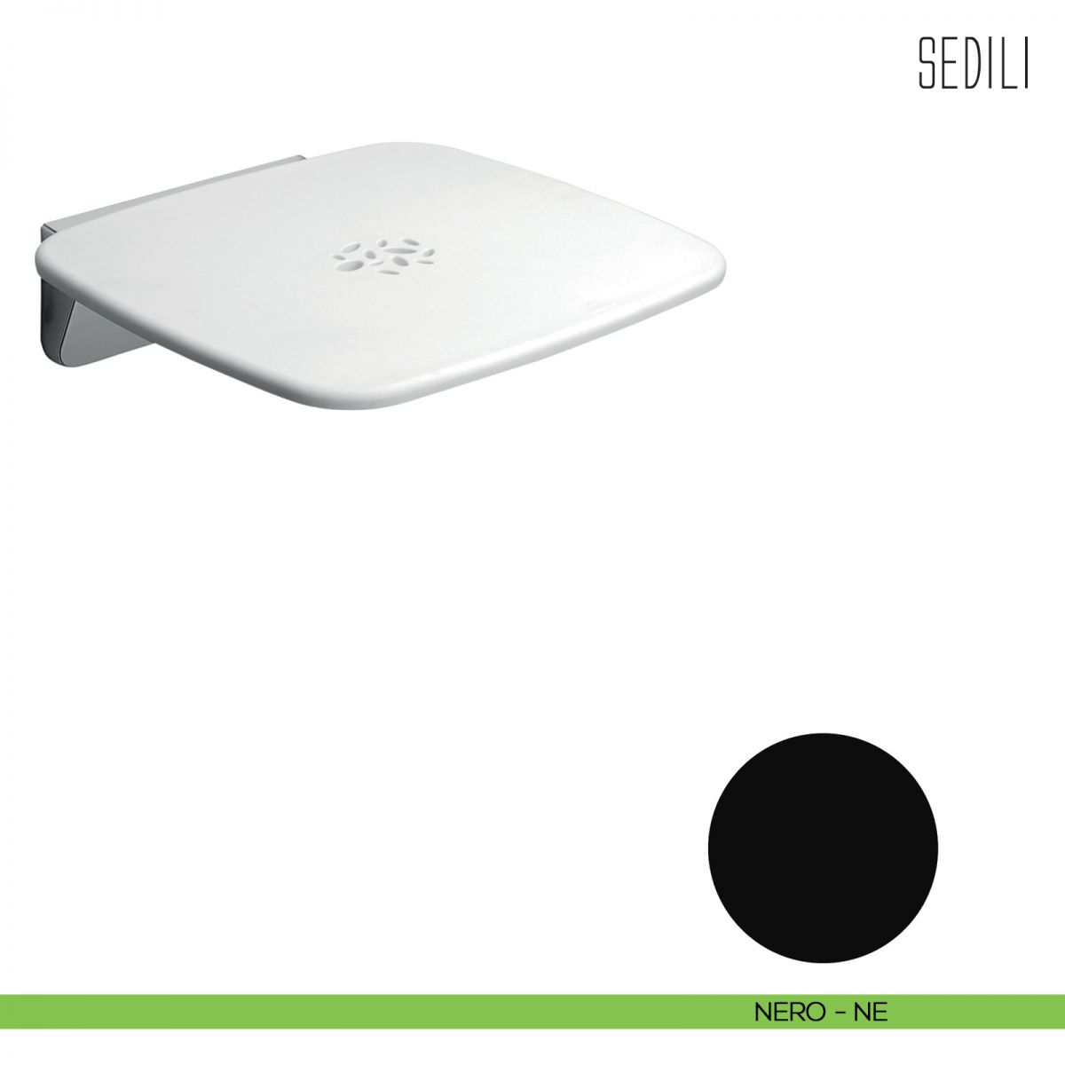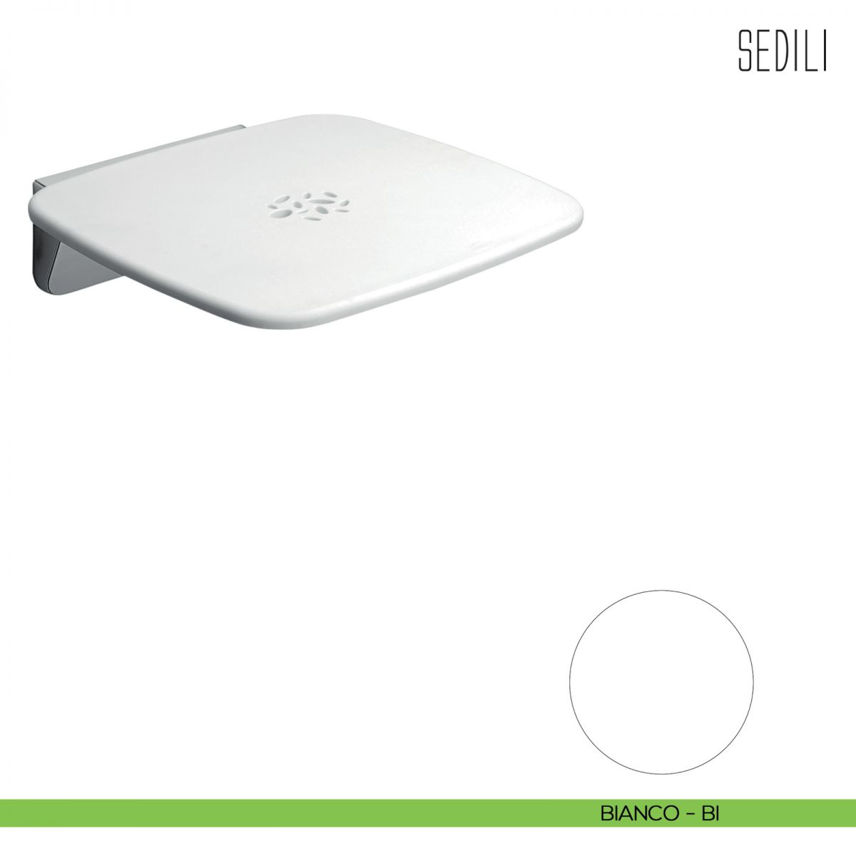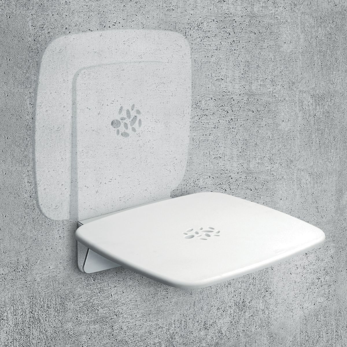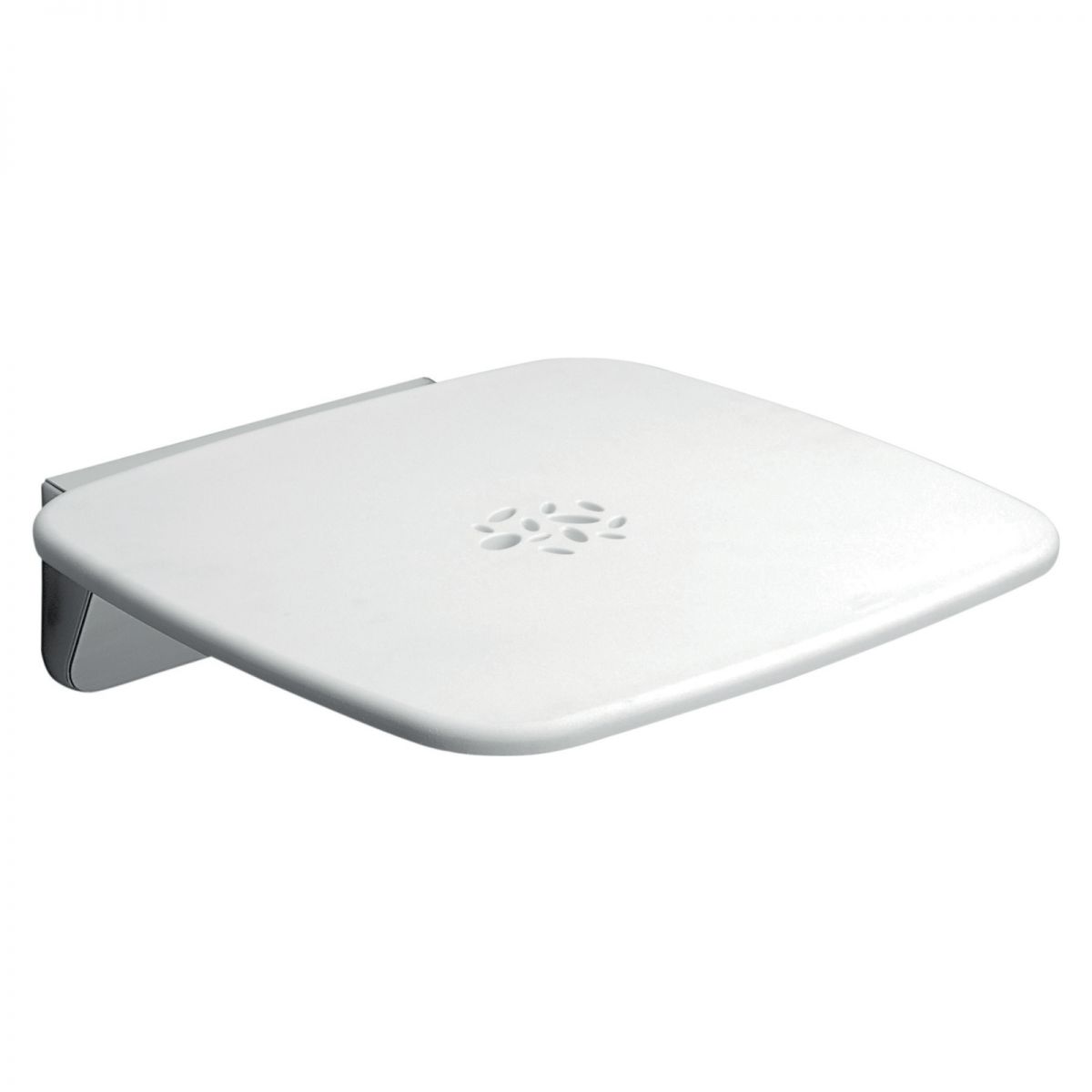 Sedile per doccia ribaltabile Colombo Design con finitura fotoincisa antiscivolo, completo di staffa a muro.