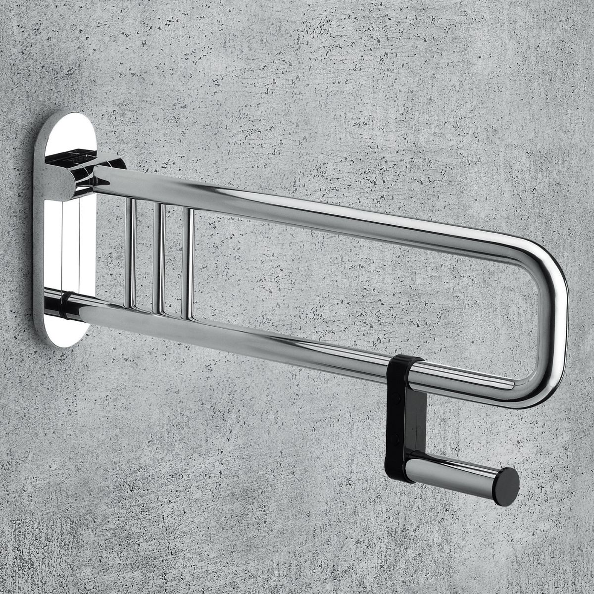 Appoggio ribaltabile con portarotolo per bagno Colombo Design 75 cm portata 130 kg finitura cromo.