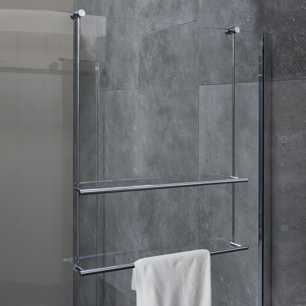 Cavalletto portaoggetti universale per box doccia con due porta salviette Colombo Design.
