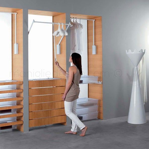 Servetto è l'ascensore per l'armadio, lo scopo principale del sistema è l'ottimizzazione degli spazi interni all'armadio. Servetto ti permette di accedere in tutta comodità e sicurezza alla parte più alta del tuo armadio. Il tuo appendiabiti è estendibile in larghezza così da poterlo allargare alle misure del tuo armadio. Con l'appendiabiti sospeso Servetto raggiungere i capi riposti in alto diventa semplicissimo e ciò permette di usufruire appieno dello spazio. Servetto è una piccola grande invenzione per rendere la vita più comoda.