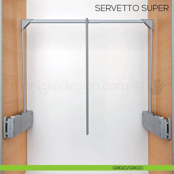 Servetto è l'ascensore per l'armadio, lo scopo principale del sistema è l'ottimizzazione degli spazi interni all'armadio. Servetto ti permette di accedere in tutta comodità e sicurezza alla parte più alta del tuo armadio. Il tuo appendiabiti è estendibile in larghezza così da poterlo allargare alle misure del tuo armadio. Con l'appendiabiti sospeso Servetto raggiungere i capi riposti in alto diventa semplicissimo e ciò permette di usufruire appieno dello spazio. Servetto è una piccola grande invenzione per rendere la vita più comoda.