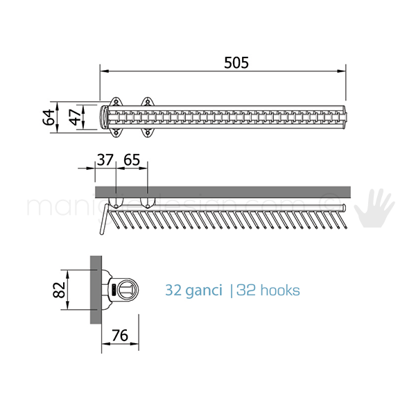 Portacravatte estraibile Servetto per armadio 32 ganci.