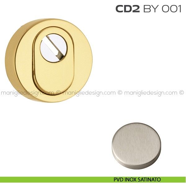 Bocchetta di sicurezza esterna tonda misura ø53 mm con blocco defender antitrapano e 2 viti passanti M5 articolo CD2 BY 001 Reguitti.