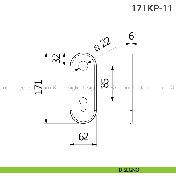 Placca per porta blindata foro yale distanza 85 mm misura 171x62 mm articolo 171 KP Reguitti.