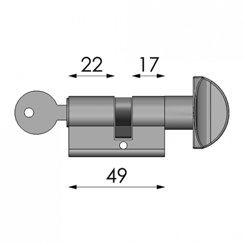 Cilindro 49 mm chiave e nottolino per serratura porta in vetro Comit Glass art. CLD001.
