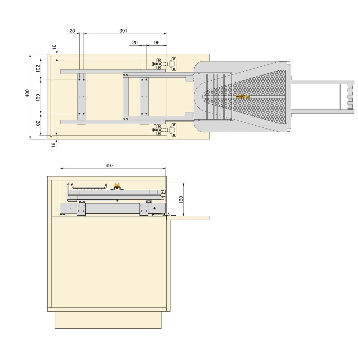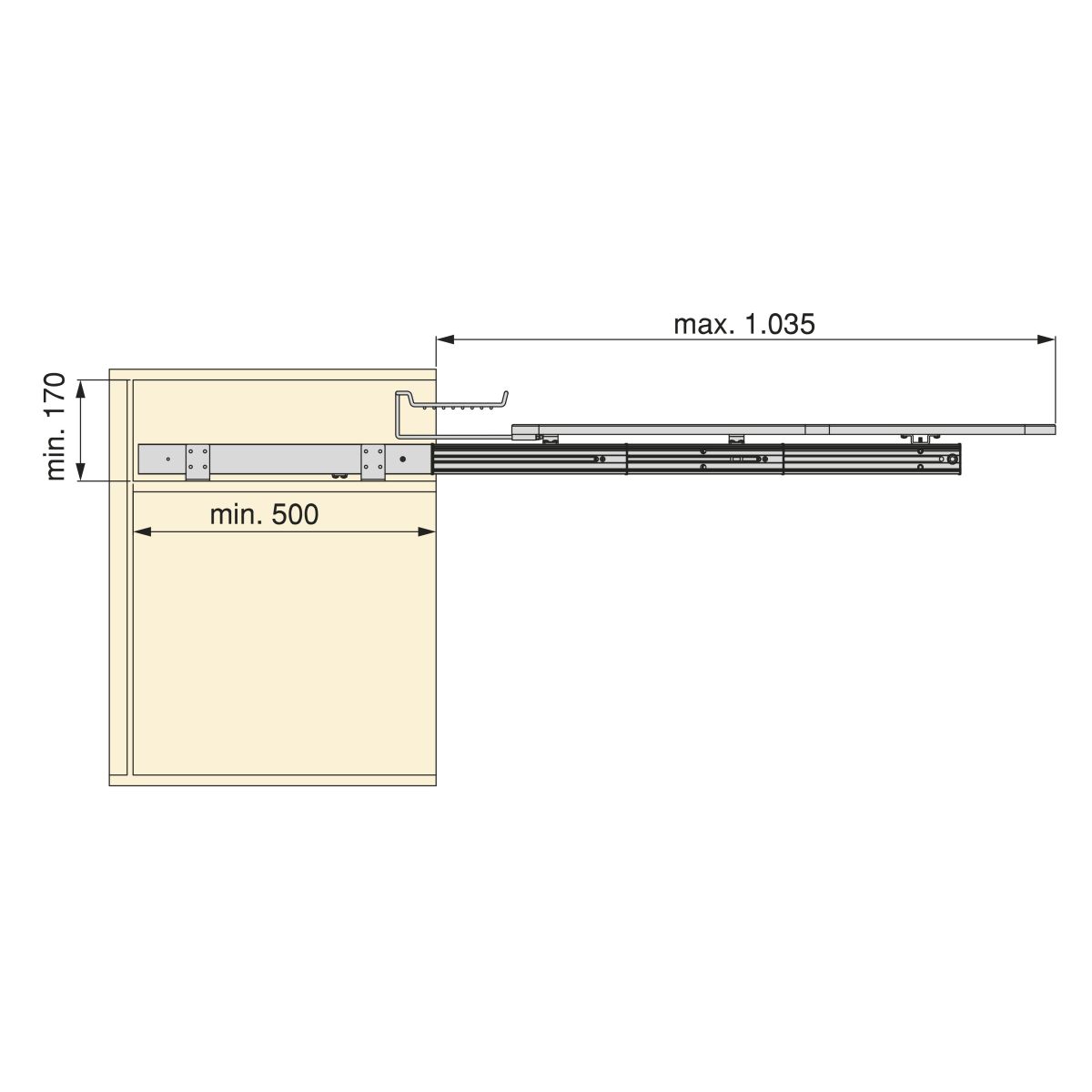 - Dimensioni minime dell'interno del mobile necessarie per il montaggio: profondità di 500 mm e altezza libera di 162 mm ed è adatto a moduli di larghezza pari o superiore a 40 cm.