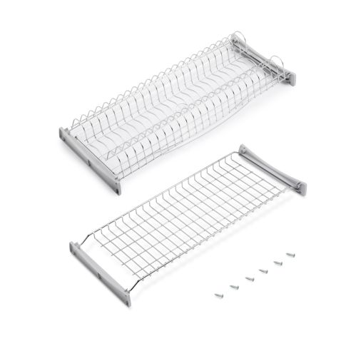 1 vassoio per piatti, 1 vassoio per tazze, 1 vassoio per sgocciolare, 4 strisce in Tecnoplastica, hardware di montaggio