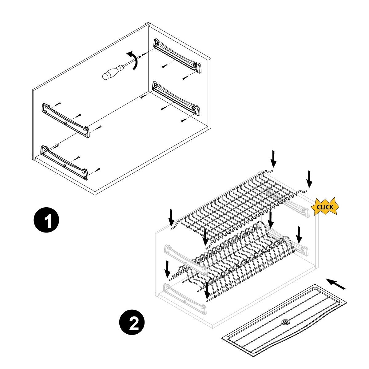- È molto facile da montare e da pulire, basta avvitare i tasselli all'interno dei mobili della cucina e posizionare i vassoi.
