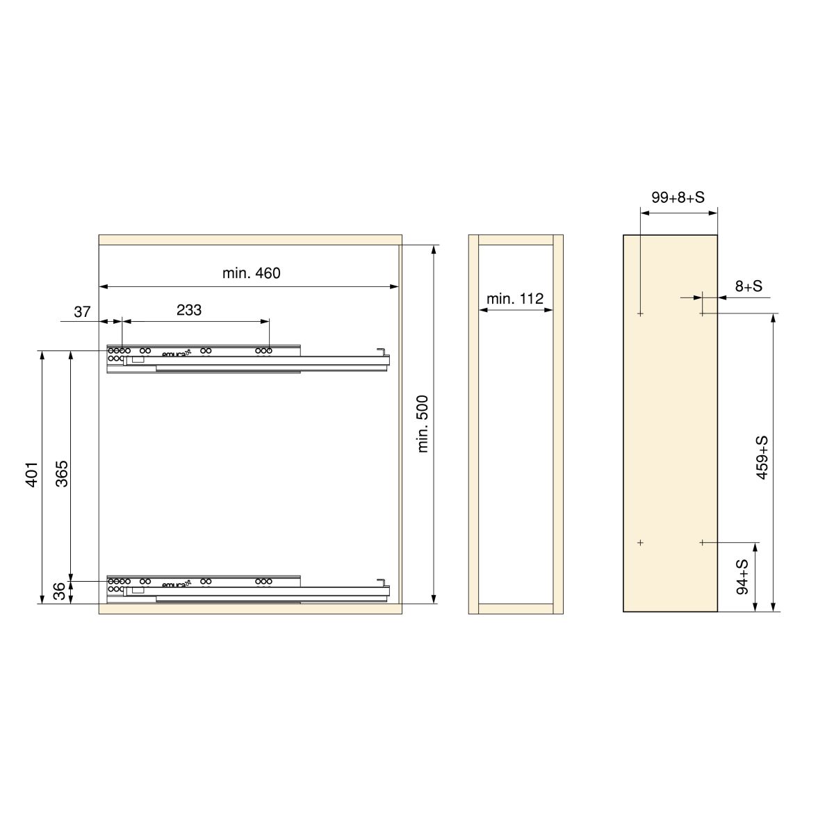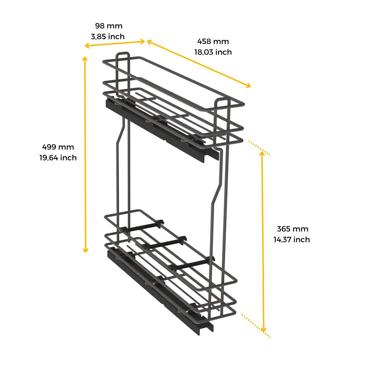 1 portabottiglie estraibile, set di guide ad estrazione totale, viti di montaggio, distanziali per cestini