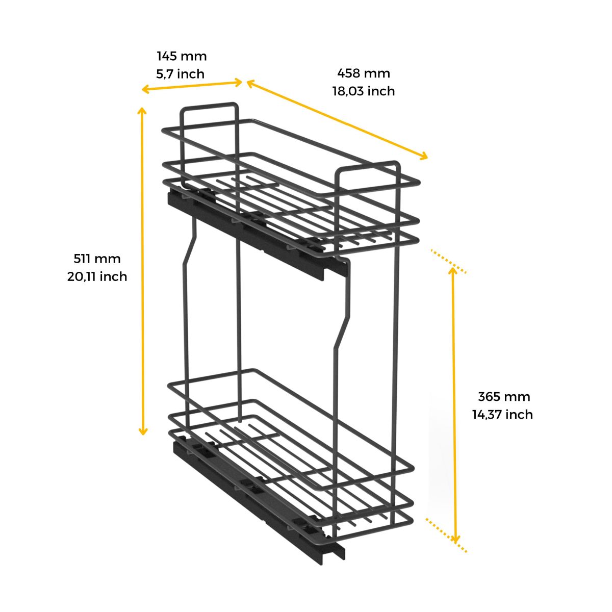 - Portabottiglie da cucina estraibile con due cesti e 3 divisori per il cesto inferiore.