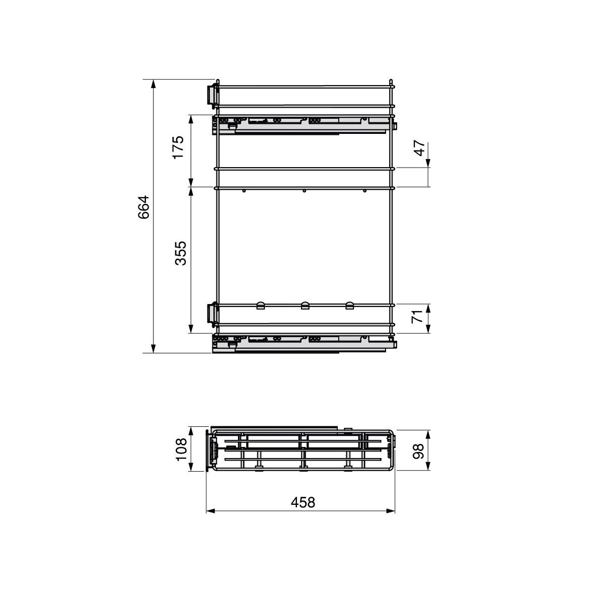 - Compatibile con moduli con una larghezza interna minima di 112 mm, profondità minima di 460 mm e altezza di 800 mm. Ha una capacità di carico fino a 30 kg.