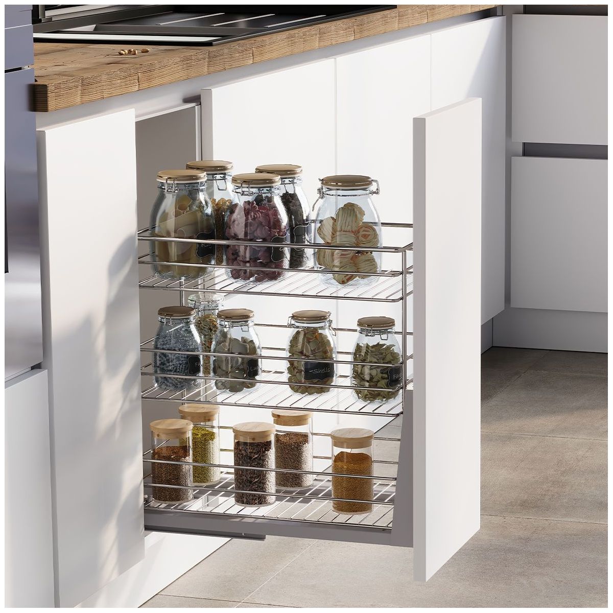 1 cestino con telaio, set di guide estraibili, viti di montaggio