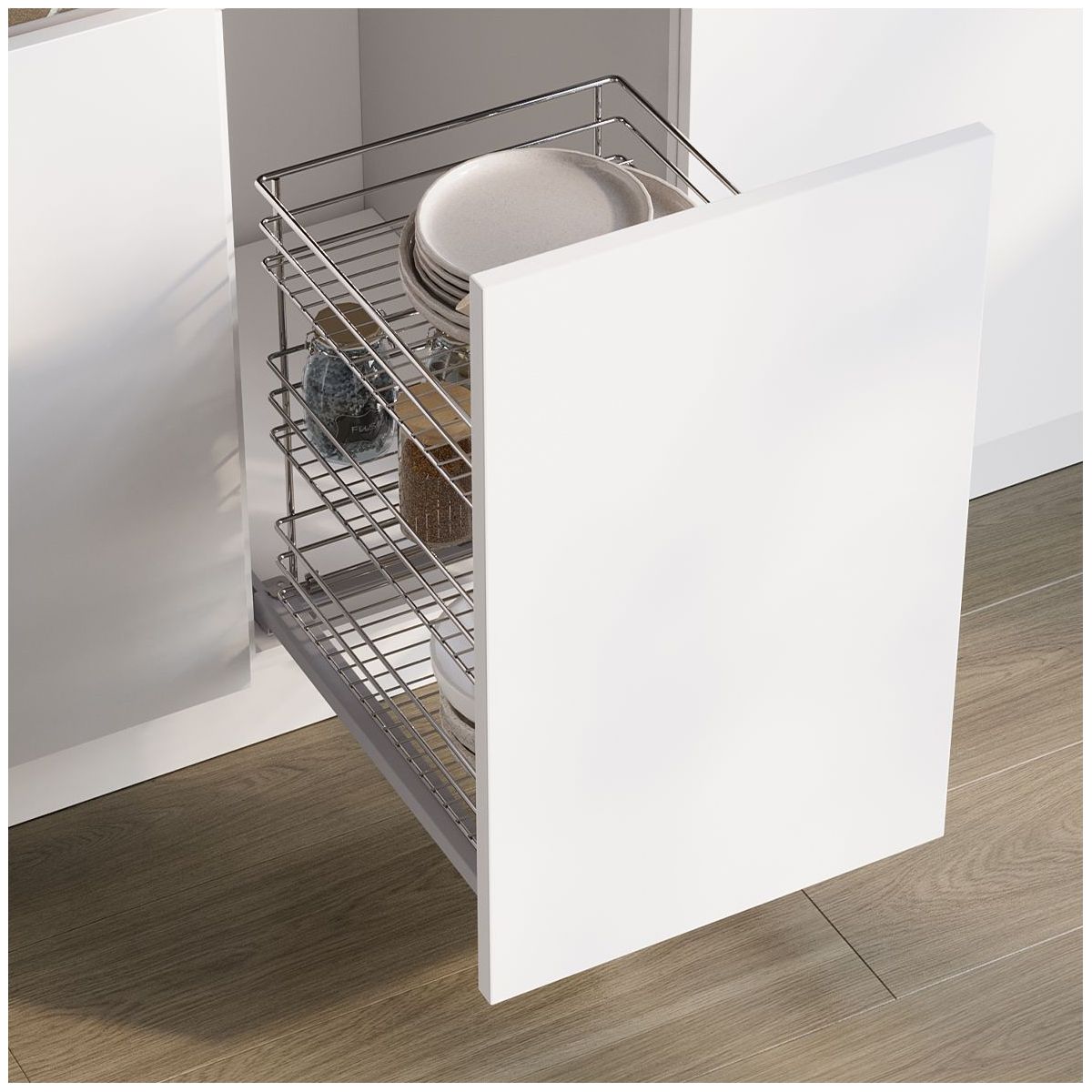 1 cestino con telaio, set di guide estraibili, viti di montaggio