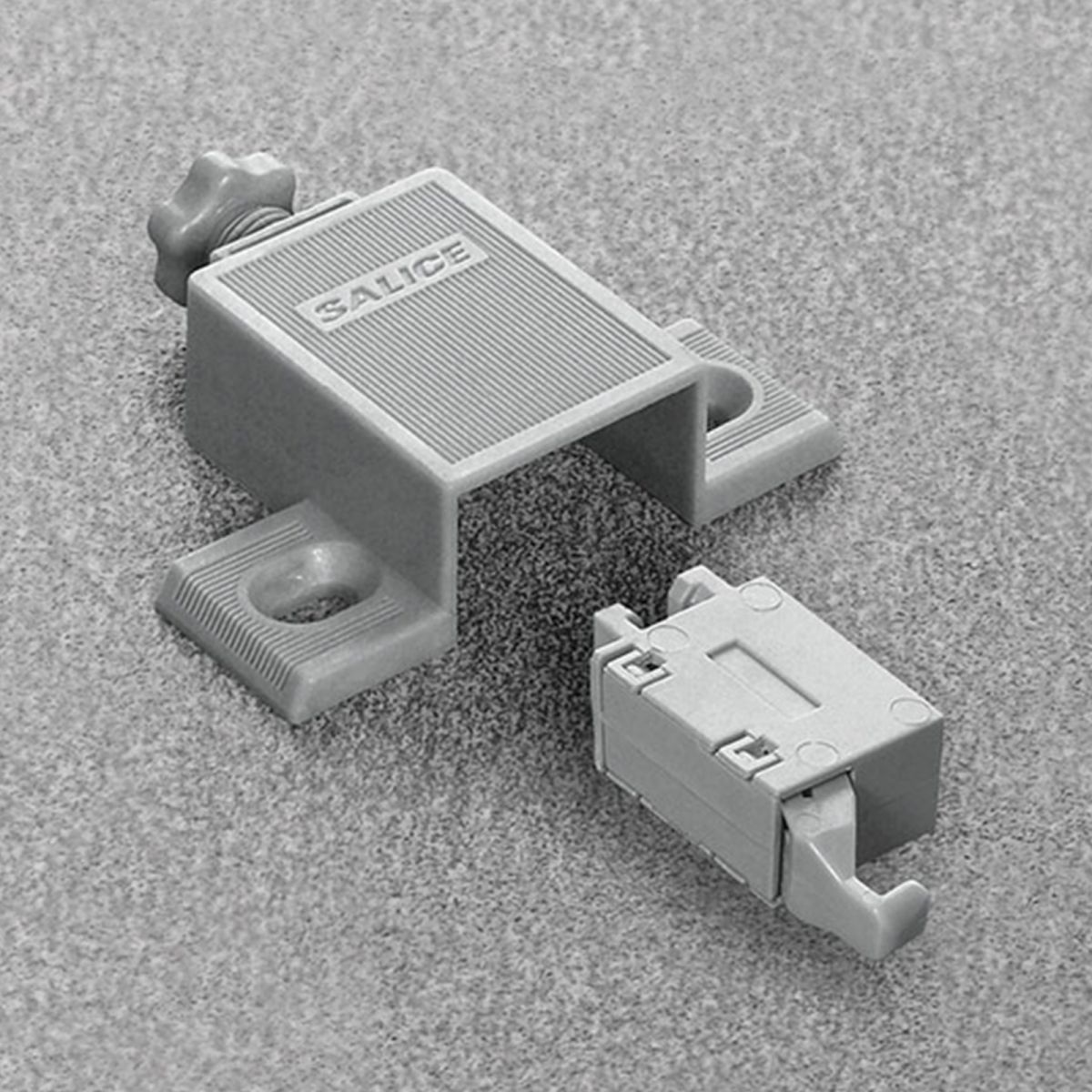 Cricchetto meccanico a pressione singolo con adattatore di regolazione per anta Salice Push DP4SNG, da avvitare, finitura grigio.