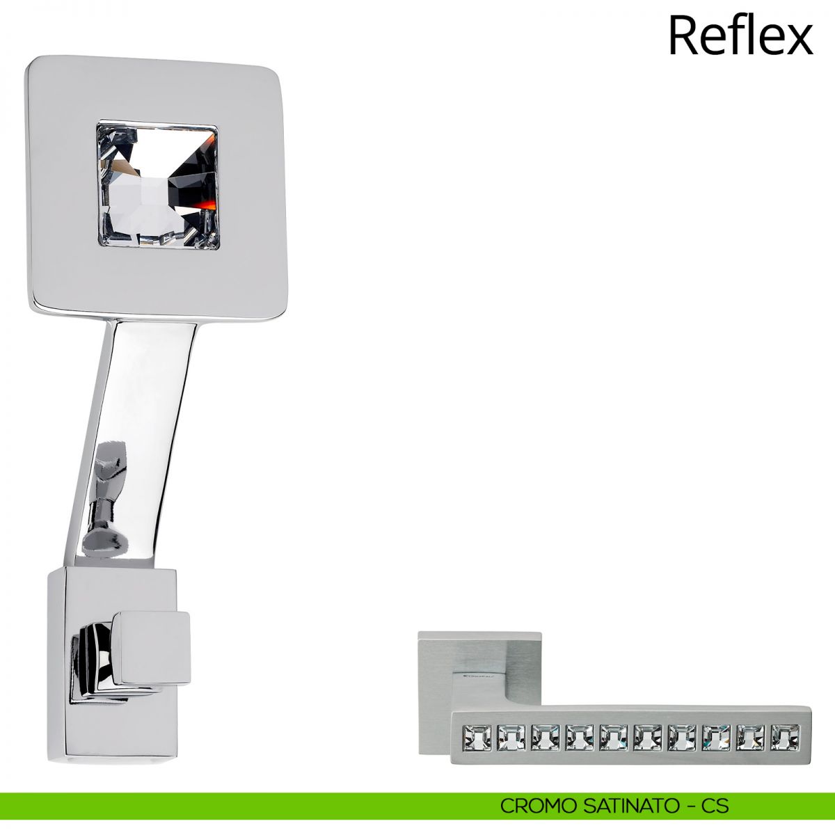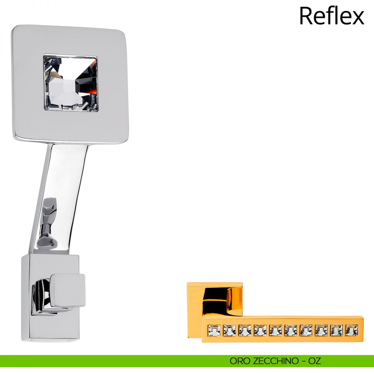 La collezione di maniglie per porte e finestre Reflex impreziosita da cristalli Swarovski® è, a distanza di anni dal lancio, una delle più copiate al mondo. La sua linea moderna e contemporanea, facilmente adattabile a qualsiasi tipologia di ambiente, è stata infatti scimmiottata in ogni dettaglio. L’originale resta comunque inimitabile e facilmente riconoscibile grazie alle proporzioni armoniche e al taglio dei cristalli Swarovski®, rigorosamente originali, studiato appositamente per esaltarne i riflessi. Così Reflex, nonostante il tempo che passa, continua a brillare sempre più. La collezione di maniglie per porte e finestre Reflex impreziosita da cristalli Swarovski® è, a distanza di anni dal lancio, una delle più copiate al mondo. La sua linea moderna e contemporanea, facilmente adattabile a qualsiasi tipologia di ambiente, è stata infatti scimmiottata in ogni dettaglio.