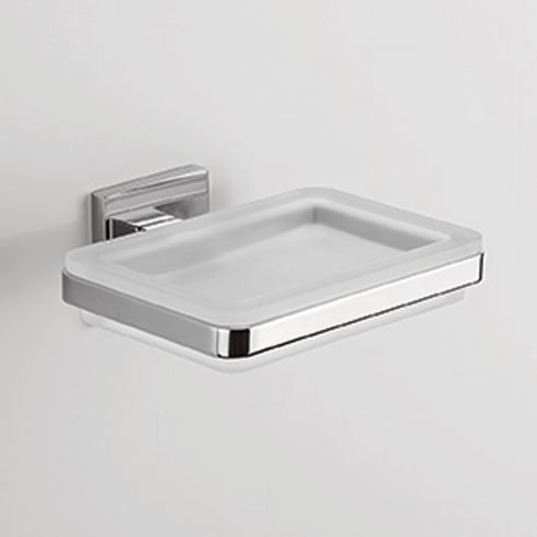 Porta sapone Colombo Design Basic Q con vetro acidato naturale.
