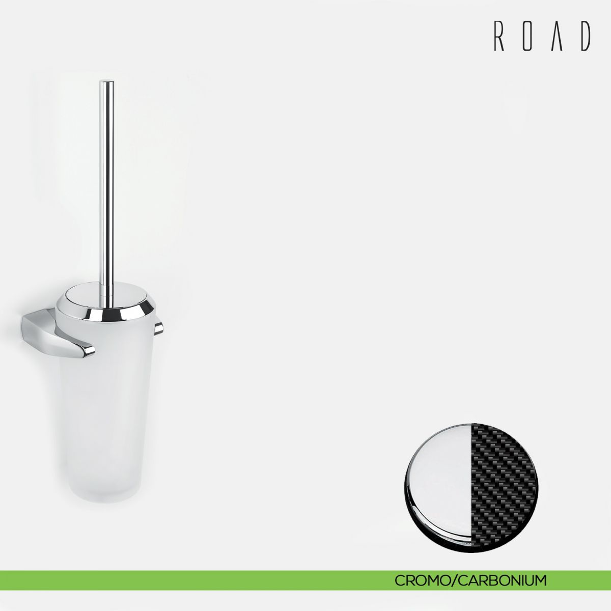 Porta scopino sospeso Colombo Design Road con vetro acidato naturale. Design by Momo Design.