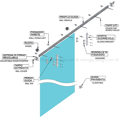 Sistema scorrevole per porta in vetro Comit Glass SCO102V1.