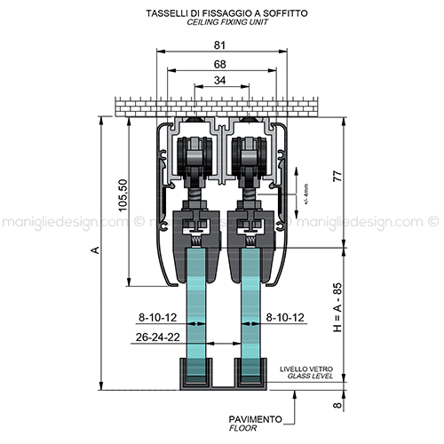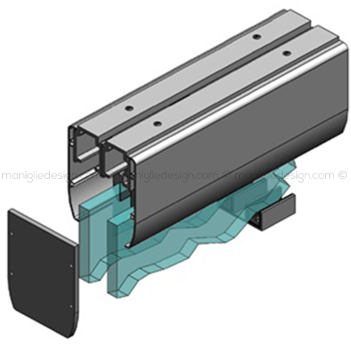 Scorrevole per porta in vetro 2 ante con veletta fissaggio a soffitto Comit Glass SCO201V7S.