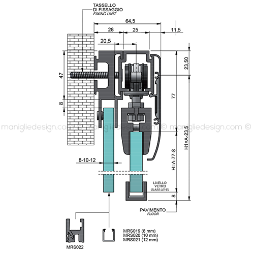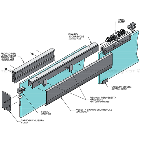 Scorrevole per vetro con veletta e vetro fisso fissaggio a parete Comit Glass SCO202V5P.