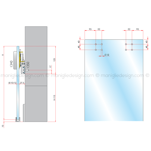 Sistema per porta scorrevole in vetro Diva Terno Scorrevoli art.1478-1349-P80-A con binario da 2 metri.