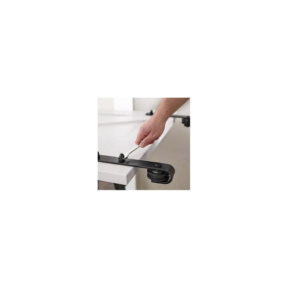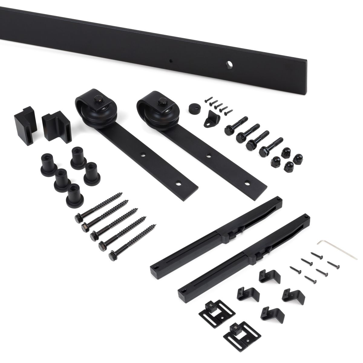 Emuca Sistema Barn per ante scorrevoli in legno sospese, Con chiusura soft, Verniciato nero, Acciaio e Tecnoplastica