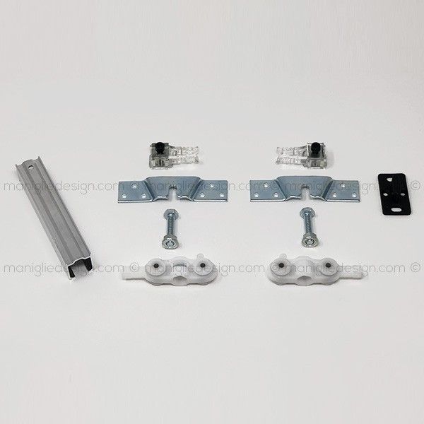 Kit per porta scorrevole portata massima 70 kg comprensivo di binario di scorrimento in alluminio grezzo da 2 mt Sisco Sistem Serie 100.