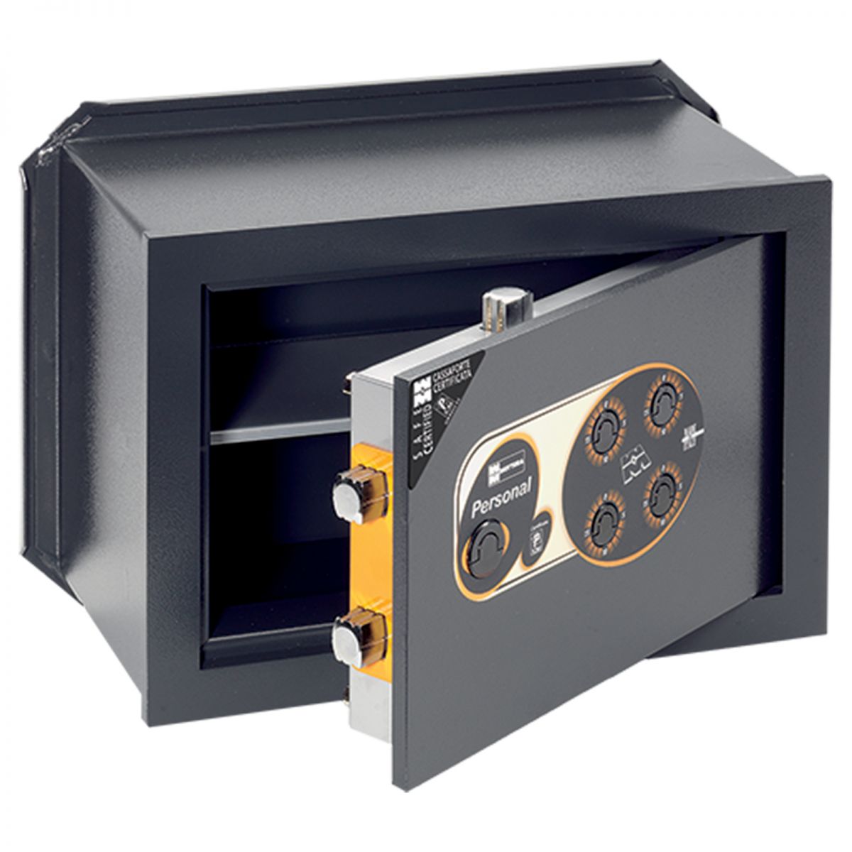 La cassaforte Personal Mottura è certificata secondo la norma UNI EN 1450, GRADO S2, da ICM. Questo modelli di cassaforte ad incasso dispone di una chiusura con combinazione meccanica a 4 pomelli. Lo spessore dello sportello è di 10 mm mentre la cornice è 12 mm. La cassaforte viene fornita corredata di un ripiano interno.