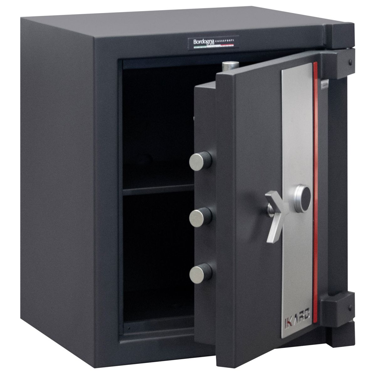 La cassaforte a mobile Bordogna Ikaro è una soluzione professionale ad alta sicurezza progettata per la protezione di valori, documenti e beni sensibili sia in ambito residenziale che professionale. Certificata ECB·S in Grado II secondo la normativa europea EN 1143-1 T2, la cassaforte Ikaro ha superato rigorosi test antieffrazione effettuati con moderni strumenti di scasso, garantendo un elevato livello di resistenza e affidabilità. Realizzata con materiali di alta qualità e grande cura dei dettagli, è dotata di serratura a chiave di serie, con possibilità di installare in alternativa o in aggiunta una serratura elettronica o un combinatore meccanico, anche in configurazione a doppia serratura. Disponibile in cinque diverse dimensioni, la cassaforte Bordogna Ikaro si adatta facilmente a differenti esigenze di spazio e capacità, risultando ideale per abitazioni, uffici, studi professionali e attività commerciali. Una cassaforte certificata, robusta e versatile, pensata per chi cerca una protezione concreta e duratura senza compromessi.