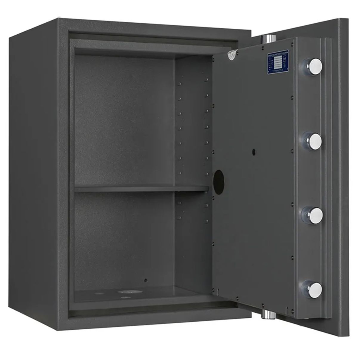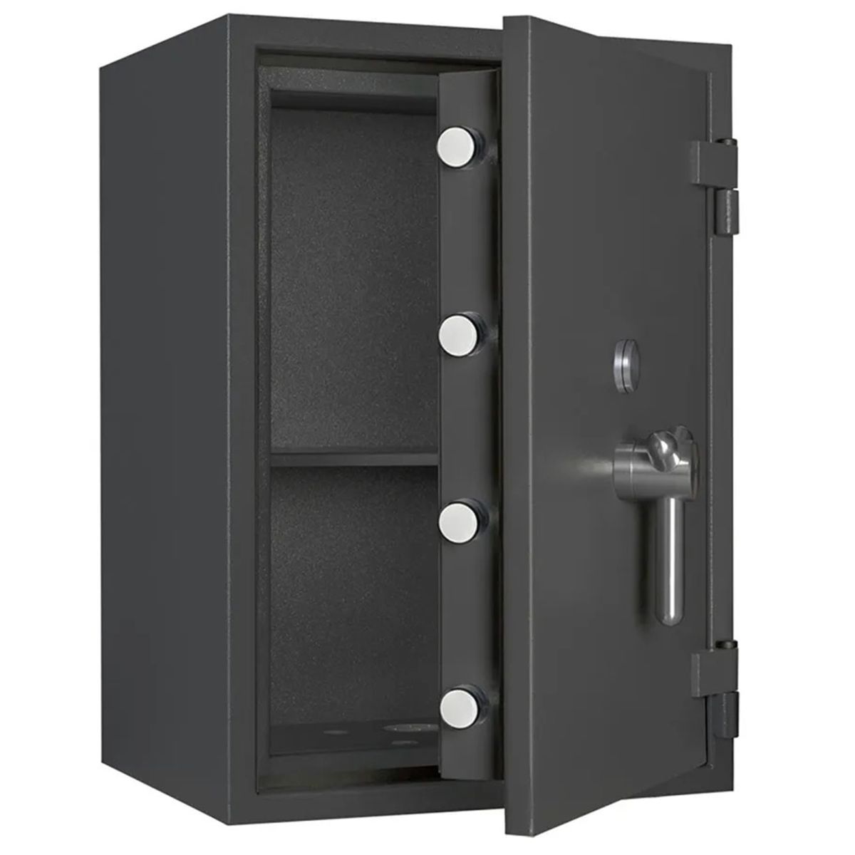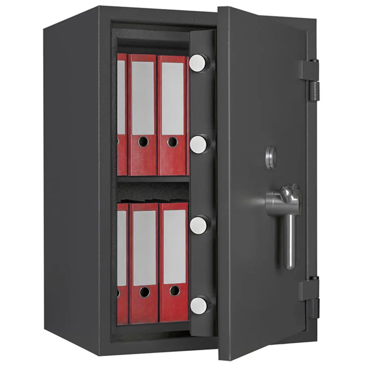 La serie di casseforti Bordogna RP rappresenta l'eccellenza nella sicurezza fisica professionale, essendo certificata secondo la Normativa Europea EN 1143-1 in Grado III. Queste casseforti a mobile sono progettate specificamente per un utilizzo professionale di alto livello, risultando la soluzione ideale per la custodia di elevate somme di denaro e per l'integrazione di cassette di sicurezza grazie a volumi interni ottimizzati. La protezione è garantita da una solida chiusura su tre lati con chiavistelli mobili e fissi sul lato cardine, abbinata a serrature certificate secondo la norma EN 1300 Classe B. Ogni unità, rifinita nel colore RAL 7024, è predisposta di serie per l'ancoraggio a pavimento con materiale di fissaggio incluso e presenta una maniglia con sporgenza di 76 mm. La gamma spazia dalla compatta RP 10/C con capacità di 94 litri e peso di 340 kg, fino alla imponente RP 70 Z/C che dispone di due battenti, un volume di 734 litri e un peso di 1380 kg. La versatilità della serie è ulteriormente accresciuta dalla disponibilità di numerosi accessori opzionali come il ripiano supplementare, il telaio estraibile per cartelle sospese, il cassetto estraibile e il tesoretto interno da 200 mm, oltre alla possibilità di configurare l'apertura con cardini a sinistra per adattarsi a ogni esigenza d'installazione.