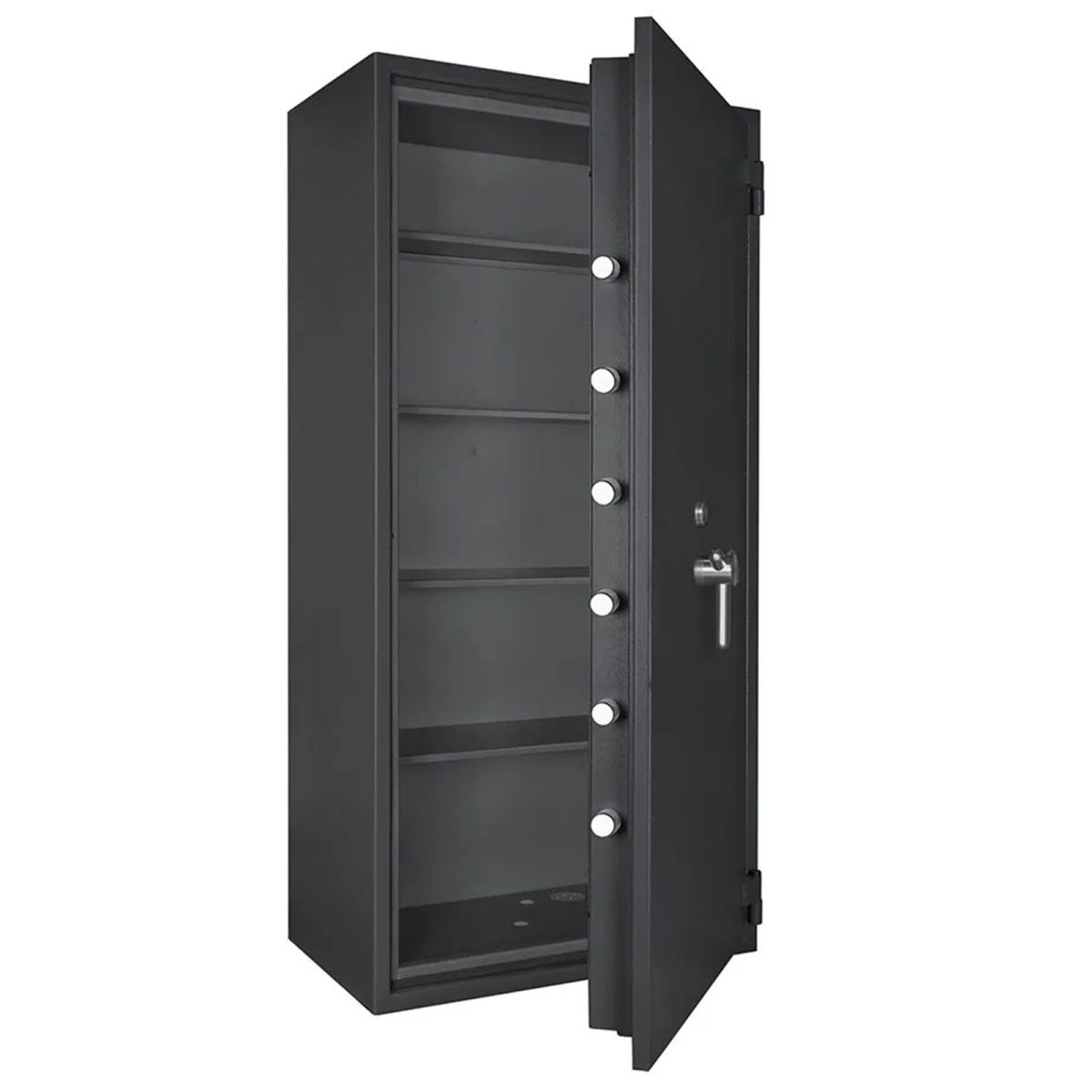 La serie di casseforti Bordogna RP rappresenta l'eccellenza nella sicurezza fisica professionale, essendo certificata secondo la Normativa Europea EN 1143-1 in Grado III. Queste casseforti a mobile sono progettate specificamente per un utilizzo professionale di alto livello, risultando la soluzione ideale per la custodia di elevate somme di denaro e per l'integrazione di cassette di sicurezza grazie a volumi interni ottimizzati. La protezione è garantita da una solida chiusura su tre lati con chiavistelli mobili e fissi sul lato cardine, abbinata a serrature certificate secondo la norma EN 1300 Classe B. Ogni unità, rifinita nel colore RAL 7024, è predisposta di serie per l'ancoraggio a pavimento con materiale di fissaggio incluso e presenta una maniglia con sporgenza di 76 mm. La gamma spazia dalla compatta RP 10/C con capacità di 94 litri e peso di 340 kg, fino alla imponente RP 70 Z/C che dispone di due battenti, un volume di 734 litri e un peso di 1380 kg. La versatilità della serie è ulteriormente accresciuta dalla disponibilità di numerosi accessori opzionali come il ripiano supplementare, il telaio estraibile per cartelle sospese, il cassetto estraibile e il tesoretto interno da 200 mm, oltre alla possibilità di configurare l'apertura con cardini a sinistra per adattarsi a ogni esigenza d'installazione.