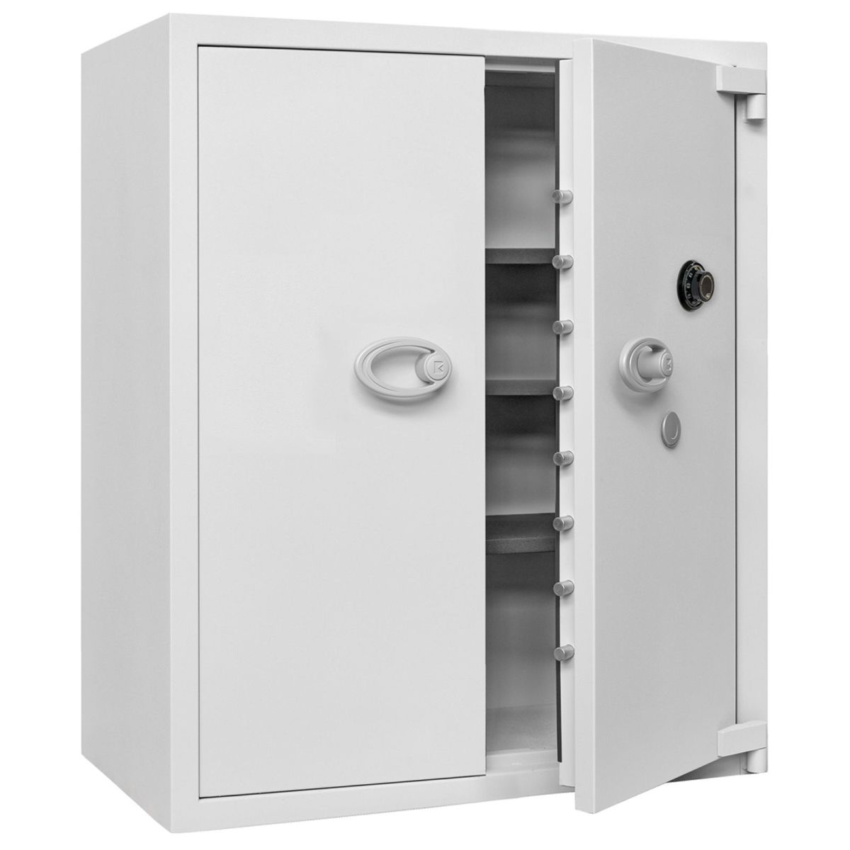 La serie KUMA di Bordogna rappresenta l'avanguardia nelle casseforti a mobile di alta sicurezza, progettate specificamente per la custodia di beni di valore in contesti professionali. Grazie a una tecnologia costruttiva di ultima generazione, queste casseforti sono la soluzione ideale per gioiellerie, istituti di credito, imprese, sale da gioco, agenzie di viaggio e organizzazioni ufficiali che necessitano della massima resistenza contro i più moderni sistemi di attacco. La serie KUMA vanta la prestigiosa certificazione EN 1143-1 in Classe IV, garantendo standard di protezione elevatissimi, supportati da serrature certificate EN 1300 Classe B. La robustezza della struttura è assicurata dall'impiego di acciaio al manganese a protezione dei meccanismi interni, rendendoli immuni ai tentativi di perforazione. La sicurezza passiva è ulteriormente incrementata dalla presenza di barre fisse all'interno del battente con funzione antistrappo, che impediscono lo scardinamento della porta. Ogni cassaforte è predisposta di serie per l'ancoraggio a pavimento, con il materiale di fissaggio già incluso nella fornitura per un'installazione immediata e sicura. Dal punto di vista estetico e funzionale, i prodotti presentano una finitura in Grigio RAL 7035 e una maniglia con sporgenza di 60 mm per una presa agevole. La gamma è estremamente versatile e comprende diversi modelli per soddisfare ogni esigenza di spazio e volume: si parte dalla compatta KUMA 75 (75 litri, 255 kg) fino alla imponente KUMA 920. Quest'ultima si distingue per la configurazione a due battenti (doppia porta), una capacità di ben 920 litri e un peso di 1565 kg, ideale per grandi depositi. Tra i modelli intermedi figurano la KUMA 200 da 201 litri e la KUMA 375 da 374 litri, entrambe fornite con due ripiani interni per ottimizzare l'organizzazione dei contenuti. Per chi necessita di ulteriore flessibilità, sono disponibili come accessori ripiani supplementari specifici per ogni codice di modello, permettendo una personalizzazione totale del vano interno. Scegliere Bordogna KUMA significa affidarsi a un prodotto d'eccellenza che combina certificazioni rigorose, materiali resistenti e un design funzionale per la protezione definitiva dei propri asset più preziosi.