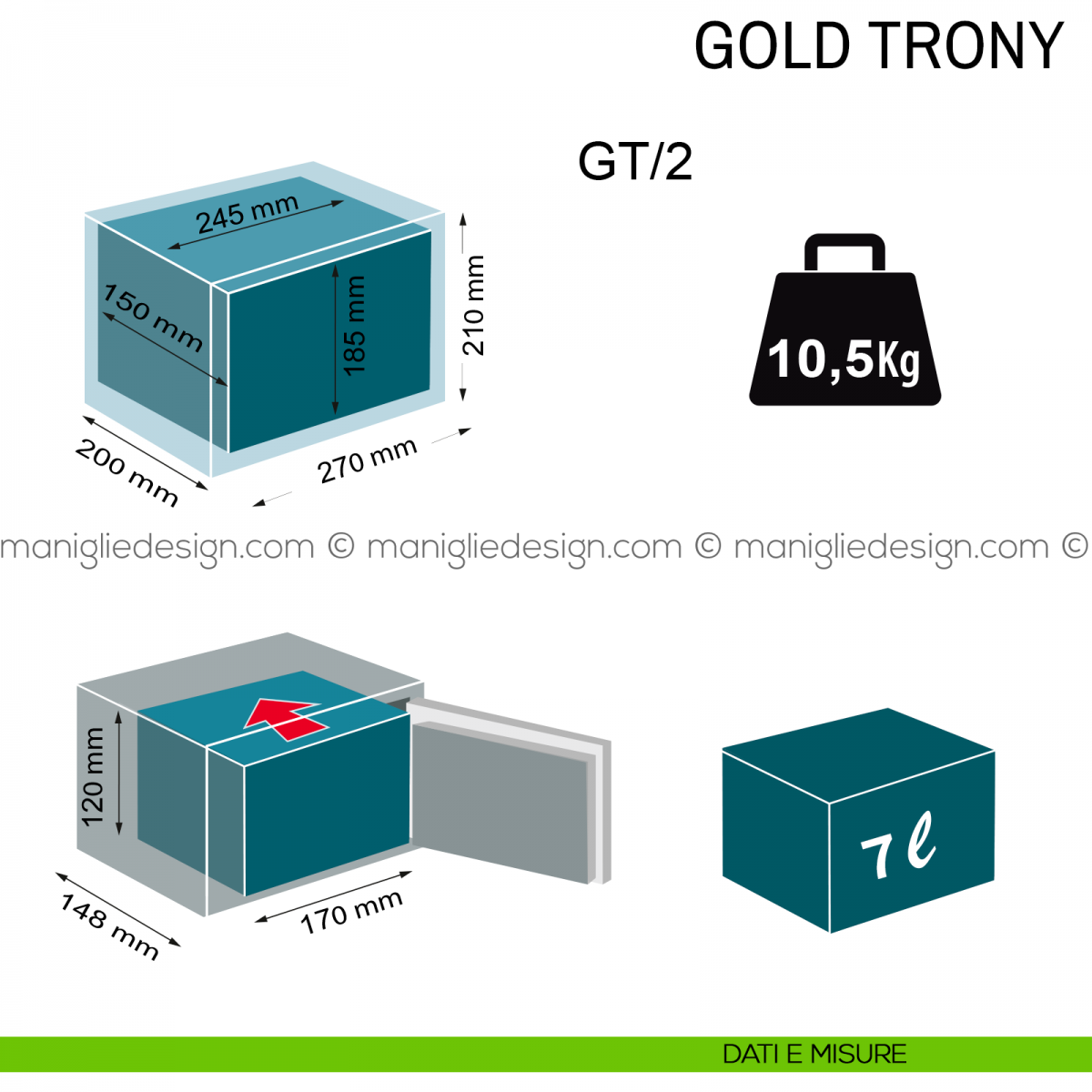 Cassaforte Technomax Gold Trony GT/7 con combinazione elettronica da incasso