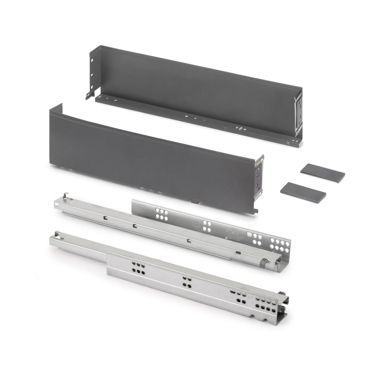 Il cassetto Simplex con fianchi metallici è la soluzione più semplice e versatile per integrare un cassetto con fianchi metallici in mobili per la cucina, bagno o casa, senza necessità di lavorazioni speciali.Con un design elegante e un’altezza di 122 mm, offre un ampio spazio interno e una finitura moderna. Il sistema consente la regolazione del frontale di ±2 mm in verticale tramite eccentrico e di ±1,5 mm in orizzontale. Include inoltre la guida Silver L con estrazione totale, chiusura ammortizzata e una capacità di carico di 25 kg, garantendo uno scorrimento fluido e stabile.Il kit comprende due fianchi laterali, un set di coperture frontali, un set di guide e le viti per fissare il pannello frontale. È realizzato in acciaio con una finitura verniciata grigio antracite o bianco.