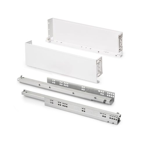 Il cassetto Simplex con fianchi metallici è la soluzione più semplice e versatile per integrare un cassetto con fianchi metallici in mobili per la cucina, bagno o casa, senza necessità di lavorazioni speciali.Con un design elegante e un’altezza di 122 mm, offre un ampio spazio interno e una finitura moderna. Il sistema consente la regolazione del frontale di ±2 mm in verticale tramite eccentrico e di ±1,5 mm in orizzontale. Include inoltre la guida Silver L con estrazione totale, chiusura ammortizzata e una capacità di carico di 25 kg, garantendo uno scorrimento fluido e stabile.Il kit comprende due fianchi laterali, un set di coperture frontali, un set di guide e le viti per fissare il pannello frontale. È realizzato in acciaio con una finitura verniciata grigio antracite o bianco.