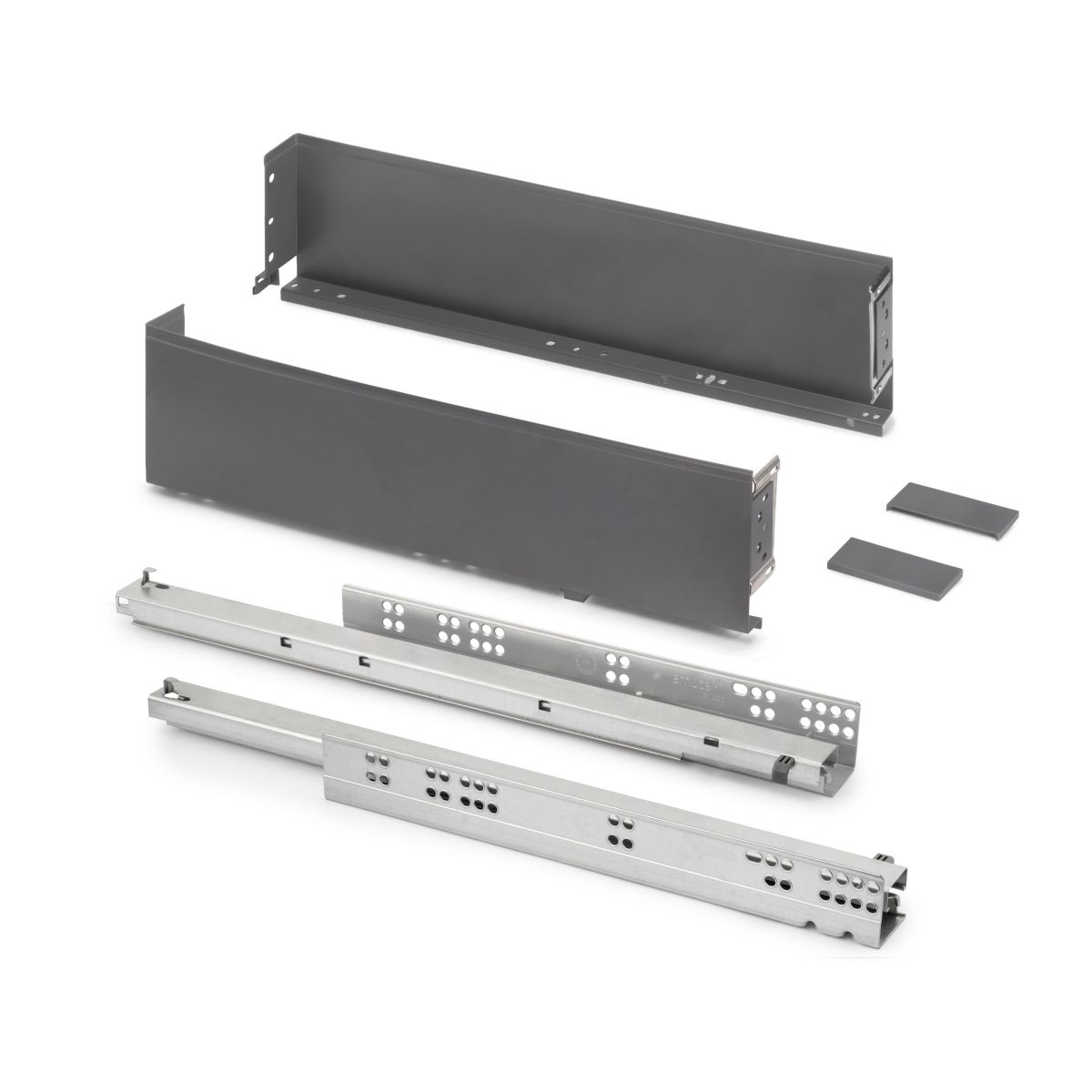 Il cassetto Simplex con fianchi metallici è la soluzione più semplice e versatile per integrare un cassetto con fianchi metallici in mobili per la cucina, bagno o casa, senza necessità di lavorazioni speciali.Con un design elegante e un’altezza di 122 mm, offre un ampio spazio interno e una finitura moderna. Il sistema consente la regolazione del frontale di ±2 mm in verticale tramite eccentrico e di ±1,5 mm in orizzontale. Include inoltre la guida Silver L con estrazione totale, chiusura ammortizzata e una capacità di carico di 25 kg, garantendo uno scorrimento fluido e stabile.Il kit comprende due fianchi laterali, un set di coperture frontali, un set di guide e le viti per fissare il pannello frontale. È realizzato in acciaio con una finitura verniciata grigio antracite o bianco.
