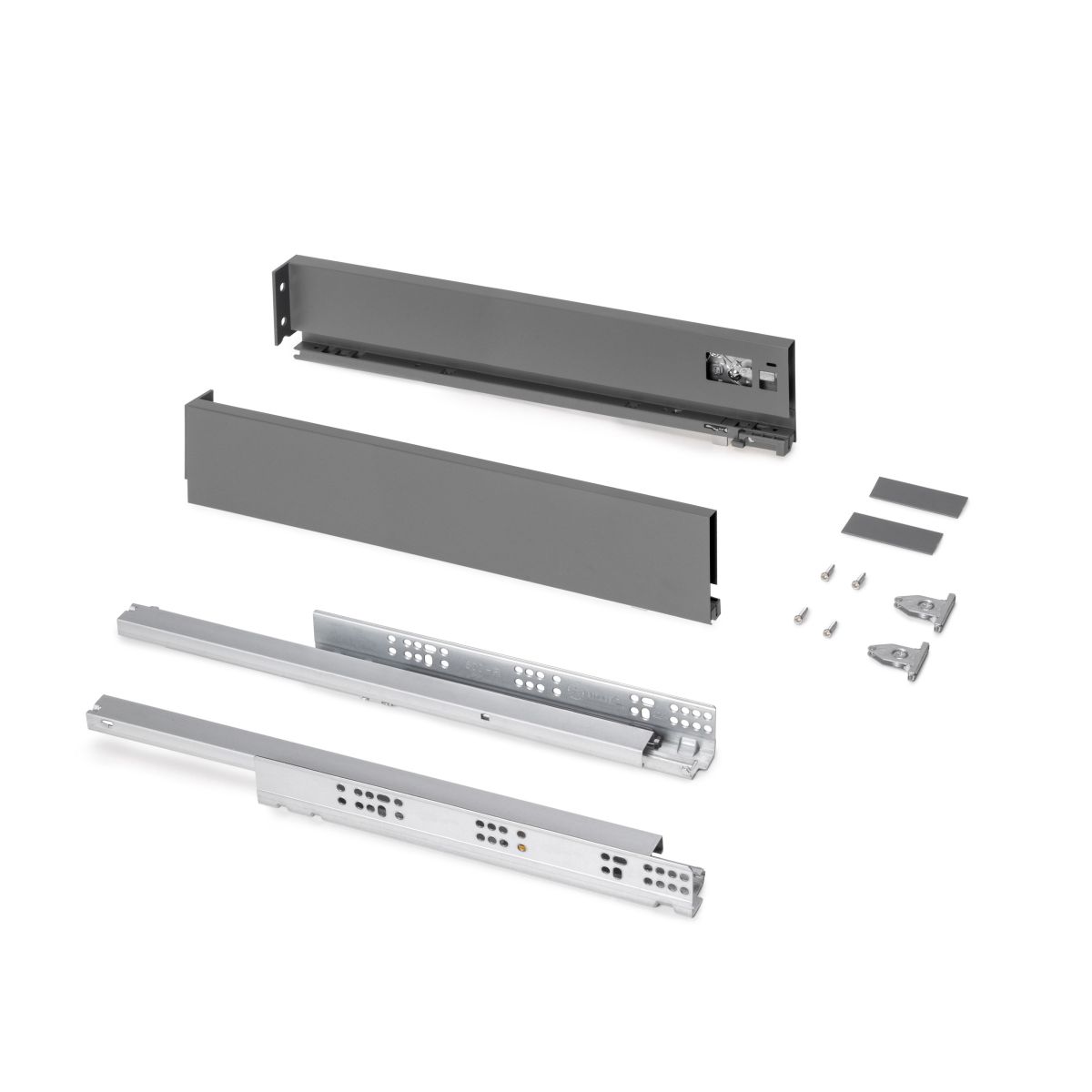 • Kit di accessori necessari per il montaggio del cassetto esterno di altezza 93 mm e profondità di 500 mm, a eccezione di frontalino, retro e fondo.
