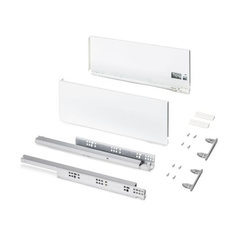 • Include di guide ad estrazione totale, set di profili e un set di ganci frontali per cassetto esterno.