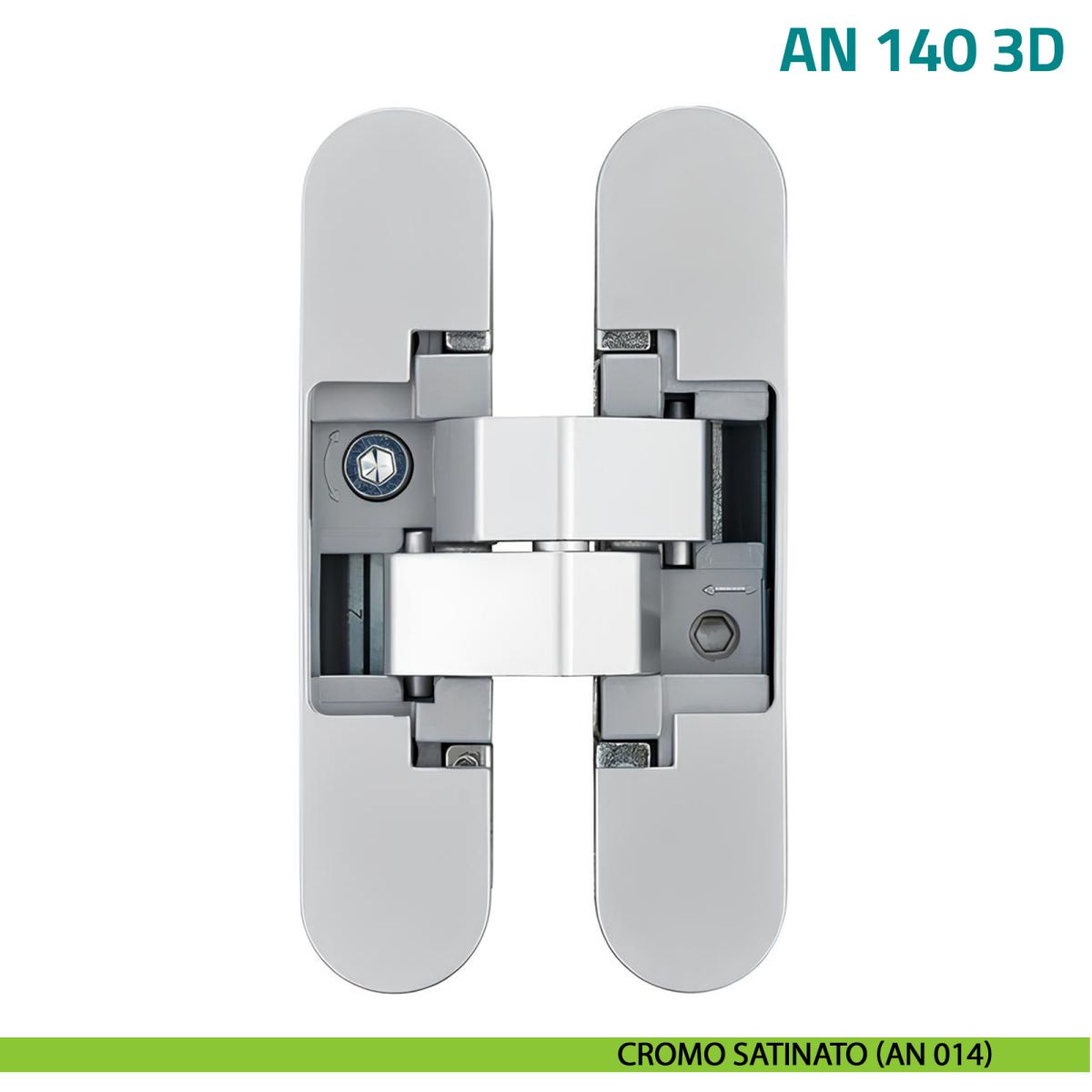 Cerniera a Scomparsa Anselmi AN 140 3D Cromo Satinato: Regolabile su 3 Assi per Porte Interne a Filo
