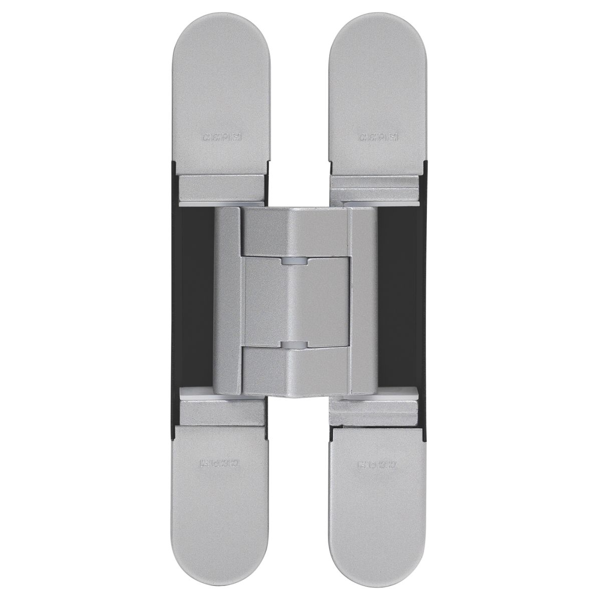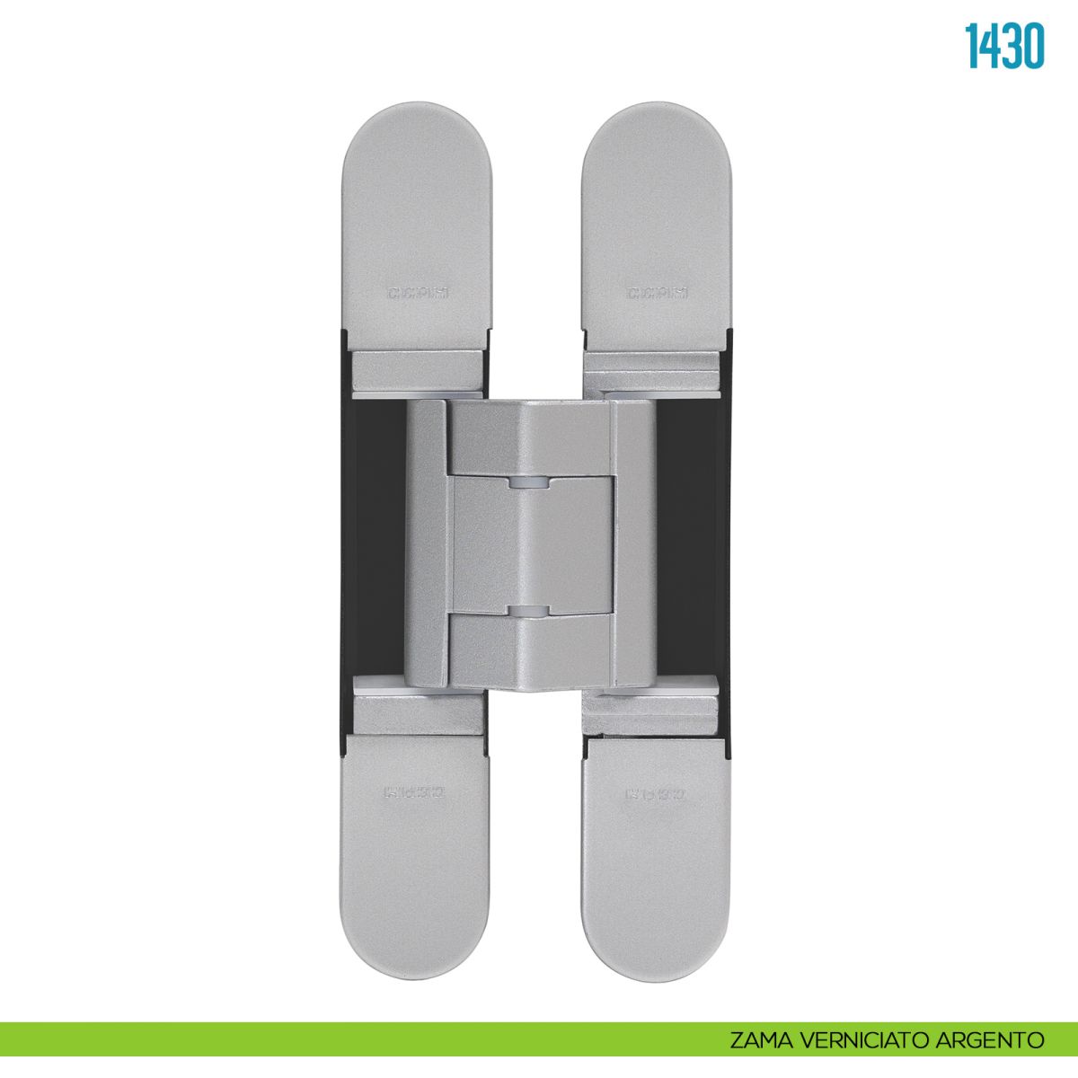 Cerniera a scomparsa argento regolabile su tre assi indipendenti per porta Ceam 1430.