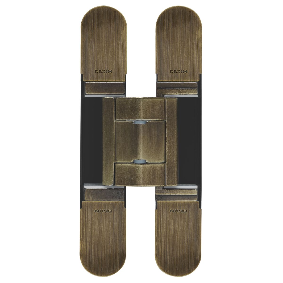 Cerniera a scomparsa ottonata regolabile su tre assi indipendenti per porta Ceam 1430.