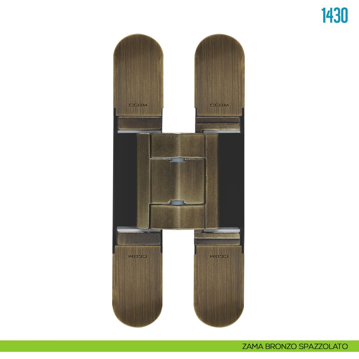 Cerniera a scomparsa bronzo spazzolato regolabile su tre assi indipendenti per porta Ceam 1430.