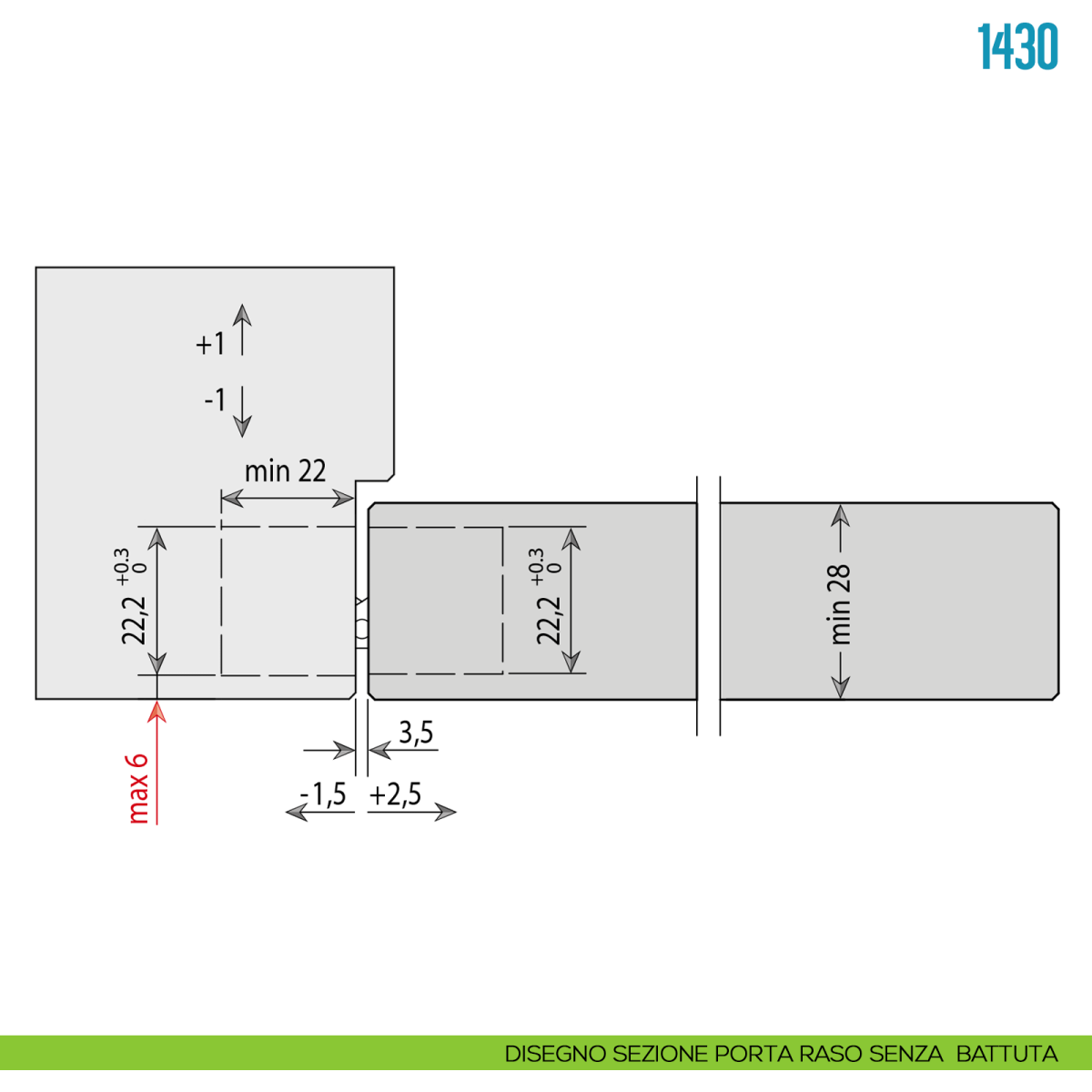Cerniera invisibile regolabile su tre assi indipendenti per porta Ceam 1430.