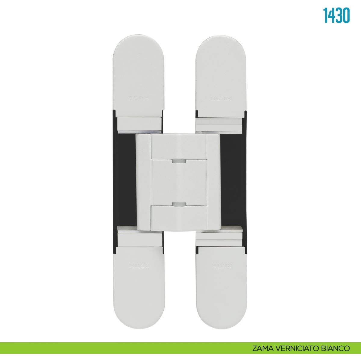 Cerniera invisibile bianca regolabile su tre assi indipendenti per porta Ceam 1430.