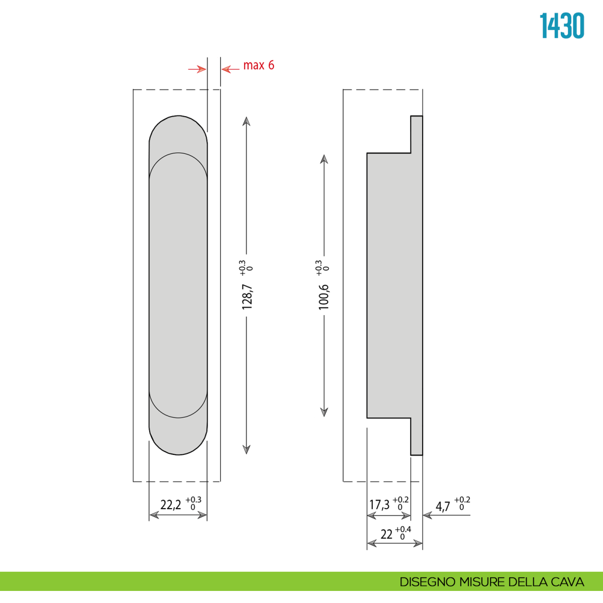 - Regolazione laterale: -1 mm + 1 mm
